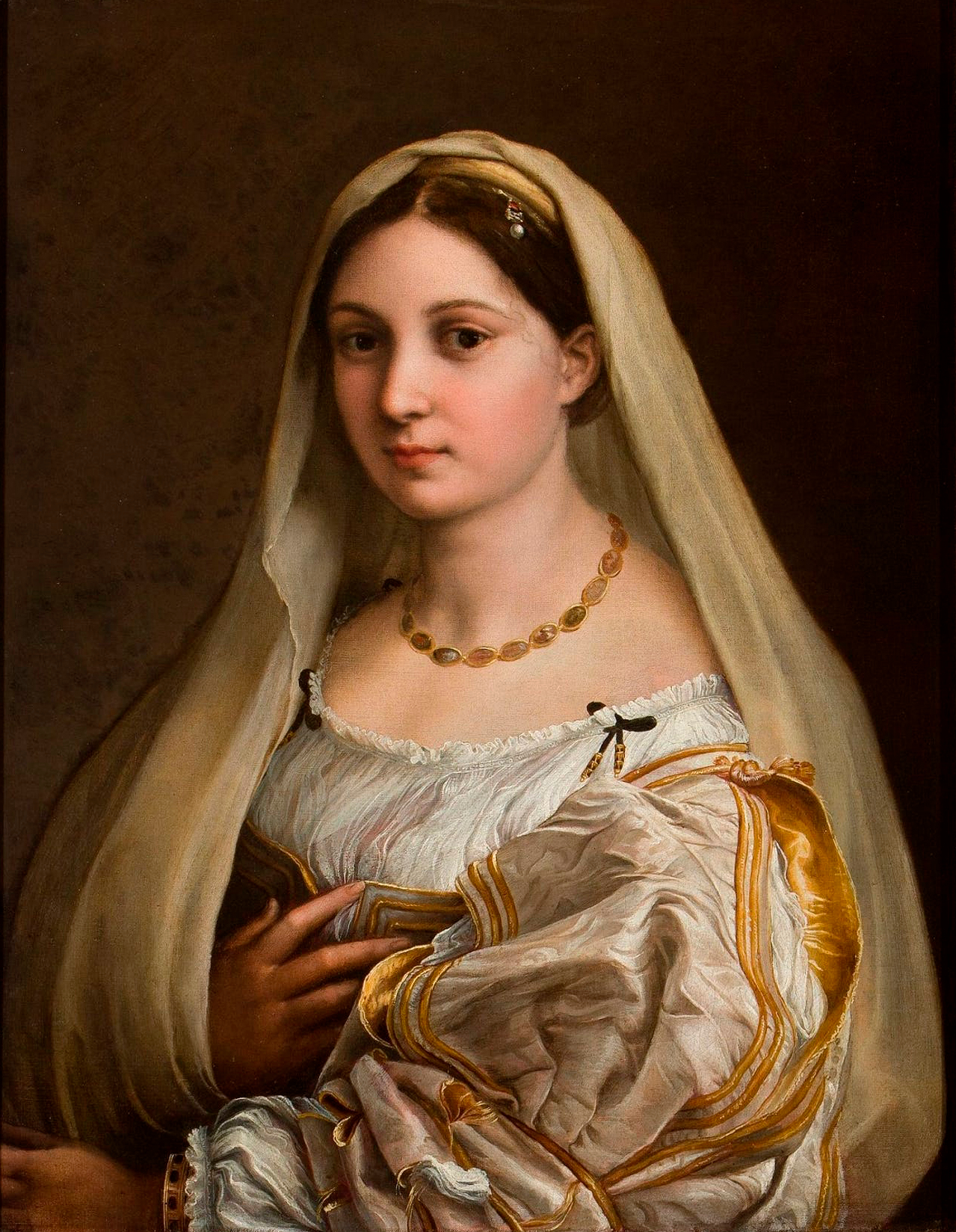 Si on prend La Velata (La voilée), de 1512-1518, on a la même grandeur par l’intermédiaire du corps représenté de manière naturelle, réelle.